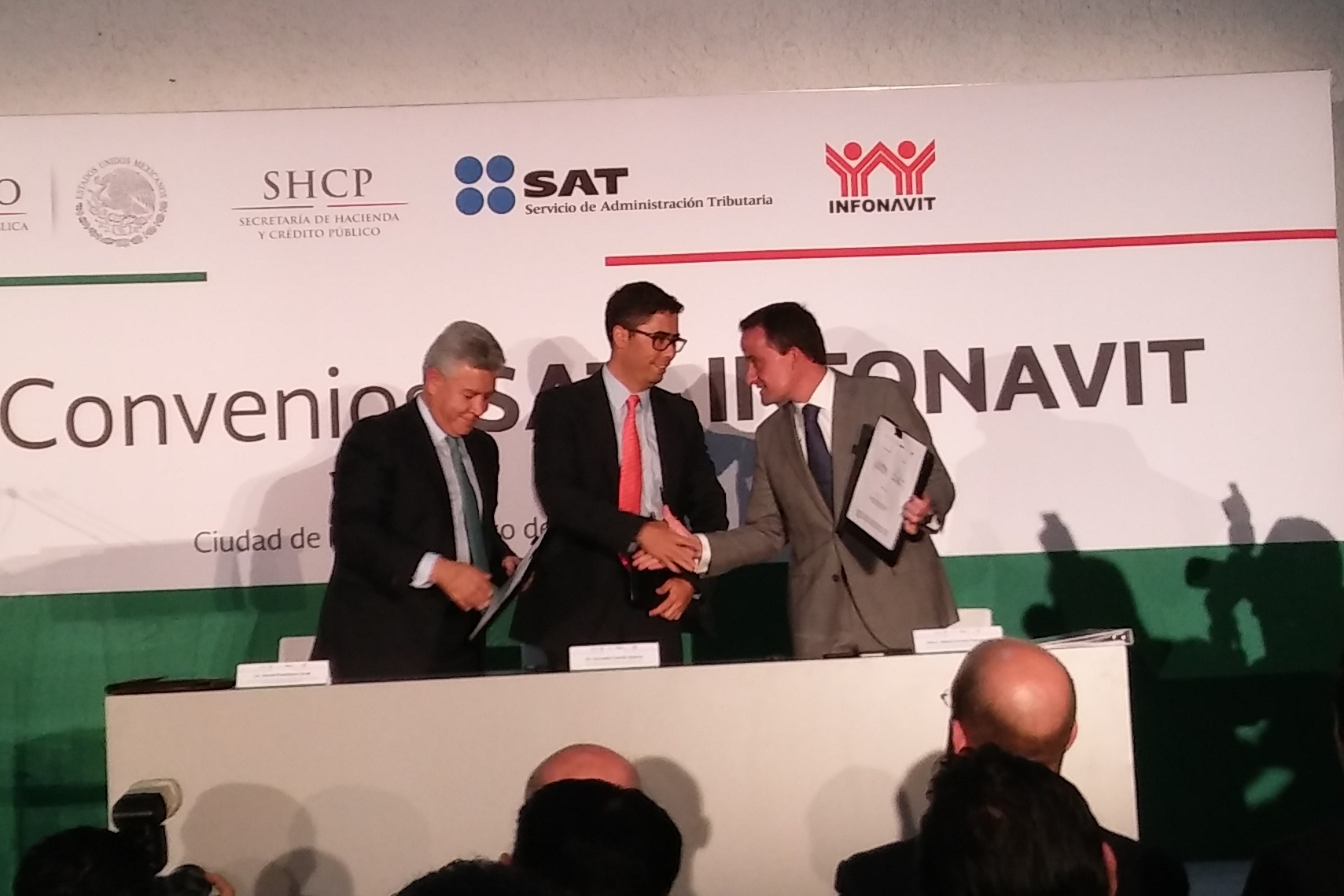 La noticia se dio en el marco de la firma de dos acuerdos entre el SAT y el Infonavit.