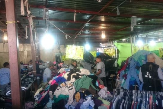 La inspección se realizó en 300 puestos fijos y semifijos dedicados principalmente a la venta de ropa de paca y artículos de piratería situados en el interior, exterior y banquetas de los mercados San Antonio I y II.