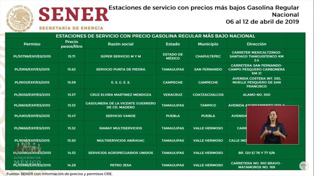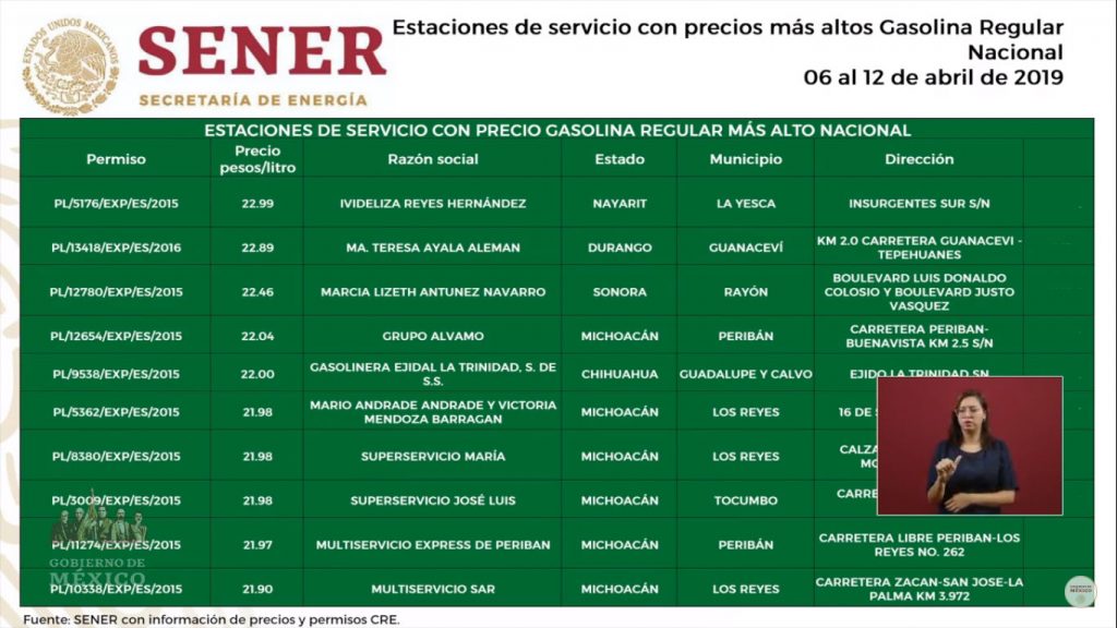 En la conferencia mañanera del día de hoy, la secretaria de Energía, Rocío Nahle, presentó una lista con las gasolineras con el combustible más caro y más barato de todo el país.