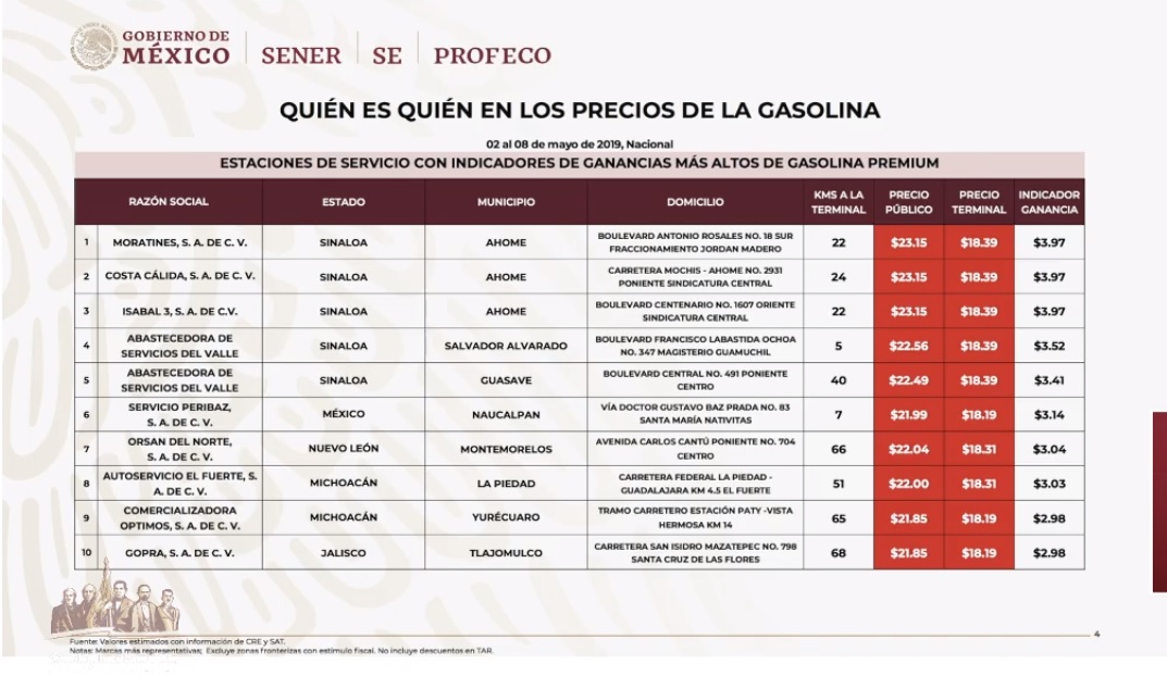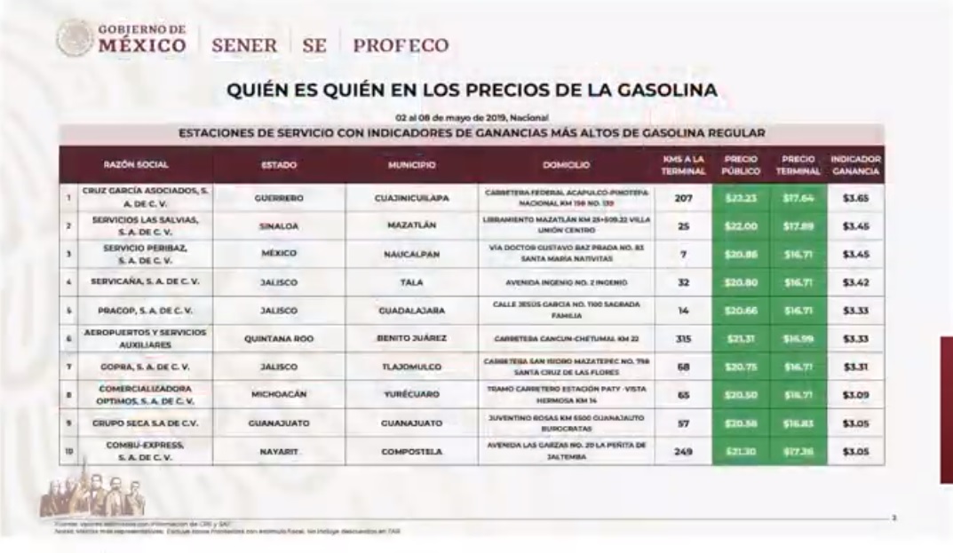 Cada lunes, el procurador Federal del Consumidor, Ricardo Shaffield Padilla, revela qué gasolineras dan la gasolina más cara de todo el país y cuáles más barata.